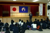御所浦港に入港後、御所浦町観光推進課 課長補佐の三宅 啓雅様をはじめとする多くの方々の歓迎をうけました。その後、「御所浦島総合開発センター」で入島式を行いました。教育長の花里